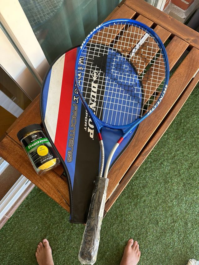 Raqueta de frontenis Dunlop en color azul. - Incluye funda. - Viene con bote de pelotas Dunlop Frontenis.