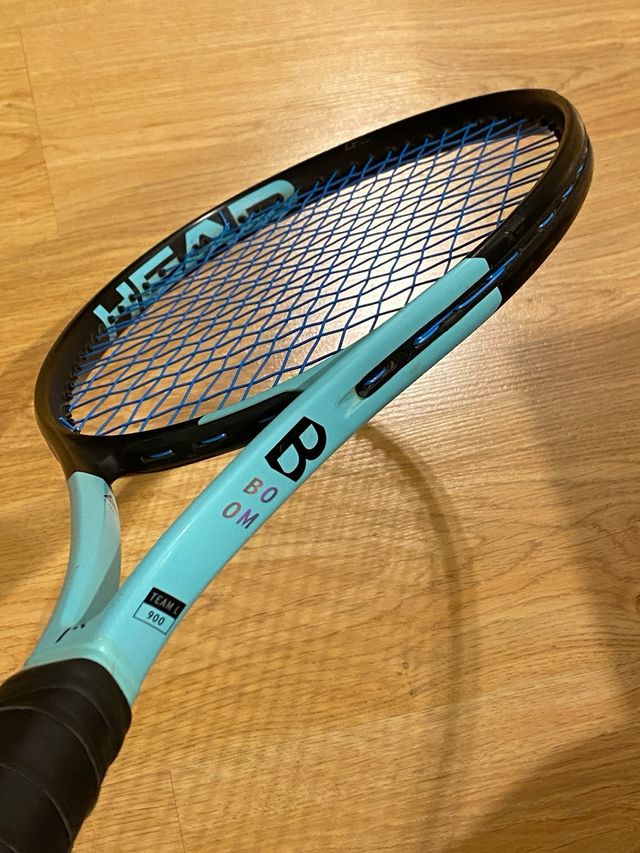 Raqueta de tenis Head Boom con un peso de 260 gramos. Diseñada para un juego dinámico y potente. - Color: Azul y negro. - Cuerdas: Azules.