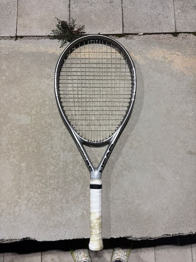 Raqueta de frontenis Head S6 LM EDITION. - Diseño plateado. - Empuñadura blanca. - Tiene una microfisura