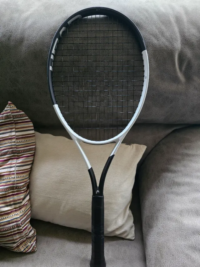 Detalles del productoRaqueta HEAD Speed MP 500 de este año. Diseño moderno en blanco y negro.