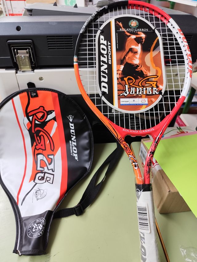 Raqueta de tenis Dunlop para jóvenes, con diseño Roland Garros. - Modelo RG Junior. - Incluye funda protectora. - Ideal para iniciarse en el tenis.
