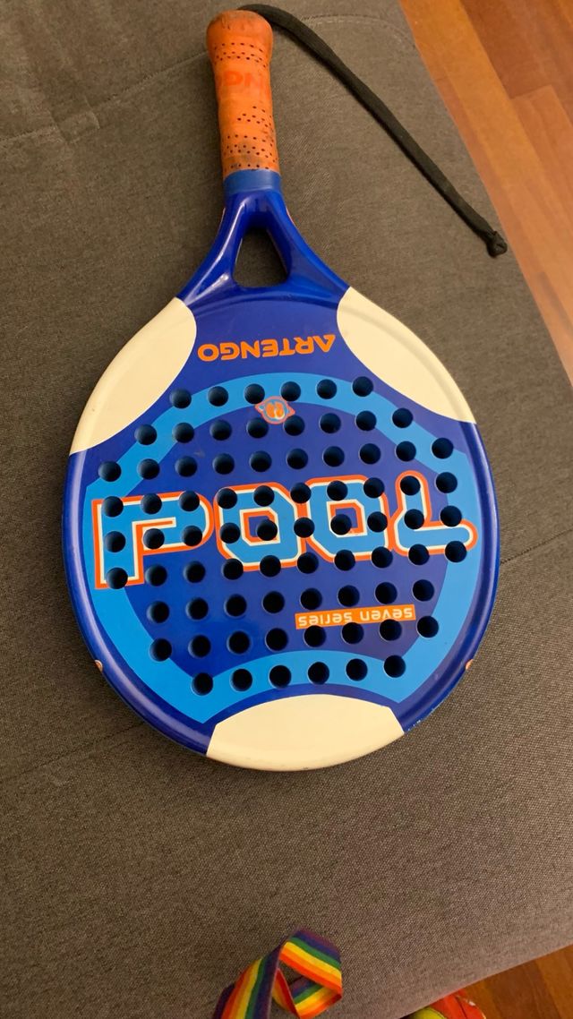 Detalles del productoRaqueta de pádel Artengo modelo Pool con diseño llamativo y funda.
