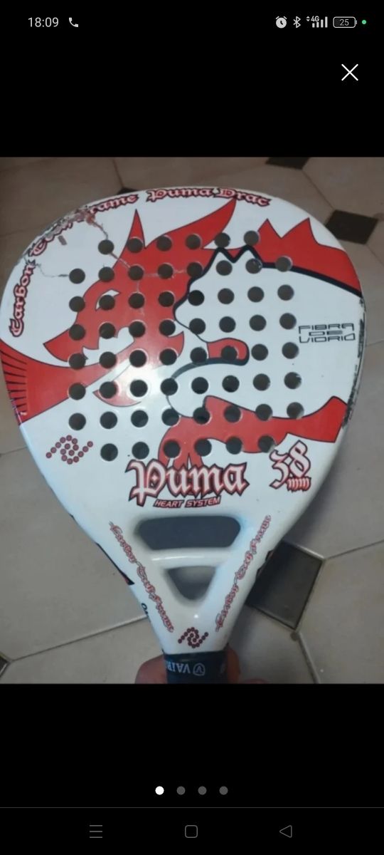 Raqueta de pádel Puma. Tiene una raja. Si necesitas más fotos las subo - Modelo Puma - Diseño con detalles en rojo y blanco.