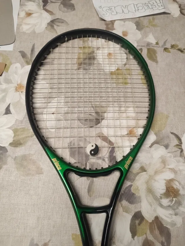 Raqueta de tenis Prince Longbody 730. - Color verde y negro. - Incluye un llavero de Yin Yang.
