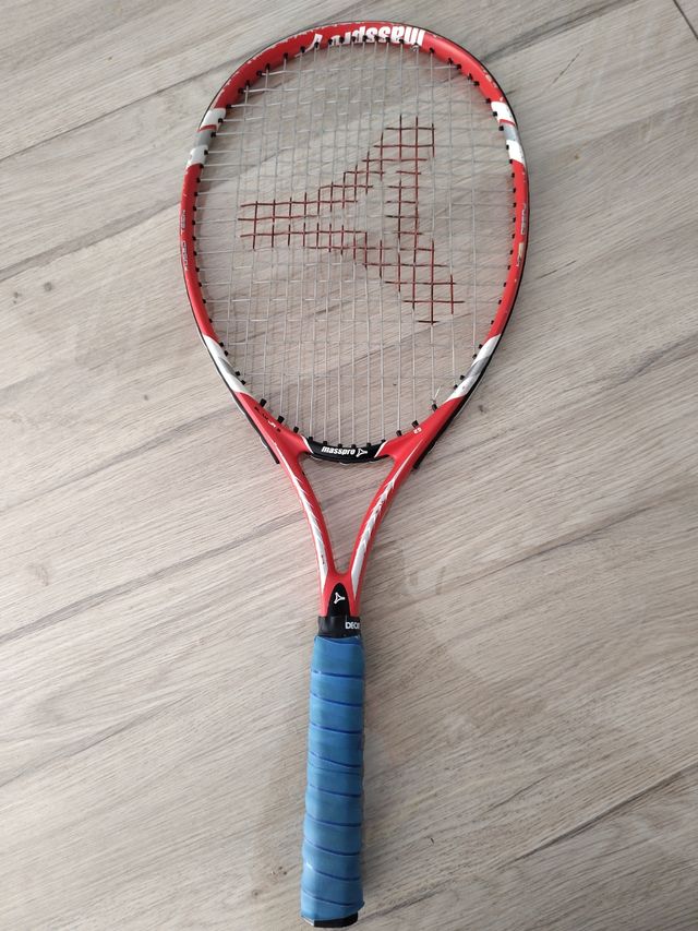 Raqueta de tenis Masspro para jóvenes. Está en buenas condiciones, con algunos signos de uso. - Marca: Masspro - Ideal para jugadores jóvenes