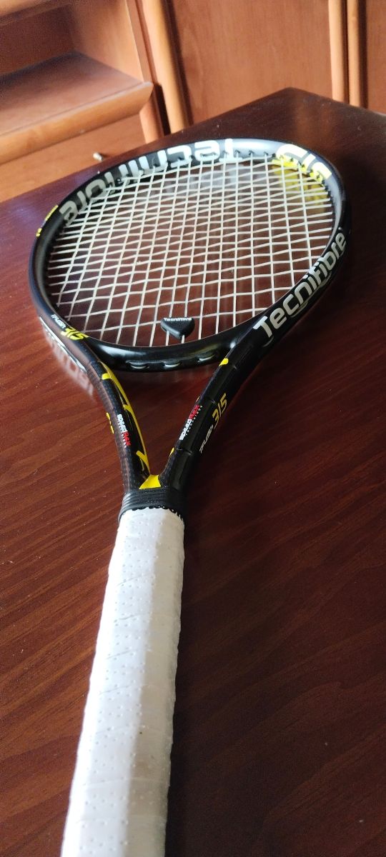 Raqueta de tenis de la marca Tecnifibre, modelo T-Flash 315. - Color negro y amarillo. - Grip blanco.
