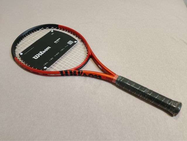 Raqueta de tenis Wilson Burn. - Color naranja y negro. - Diseño moderno.
