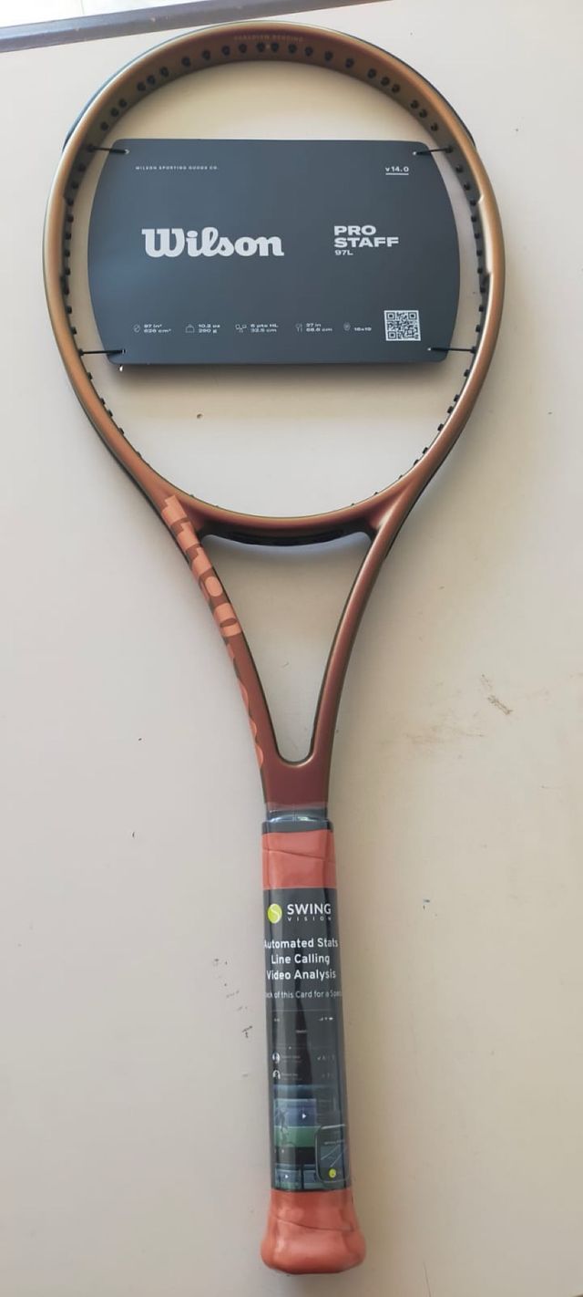 Raqueta de tenis Wilson Pro Staff v14. - Modelo: Pro Staff 97L - Color: Bronce - Incluye etiqueta original. -puño :2 -peso: 290 gramos -patrón:16*19
