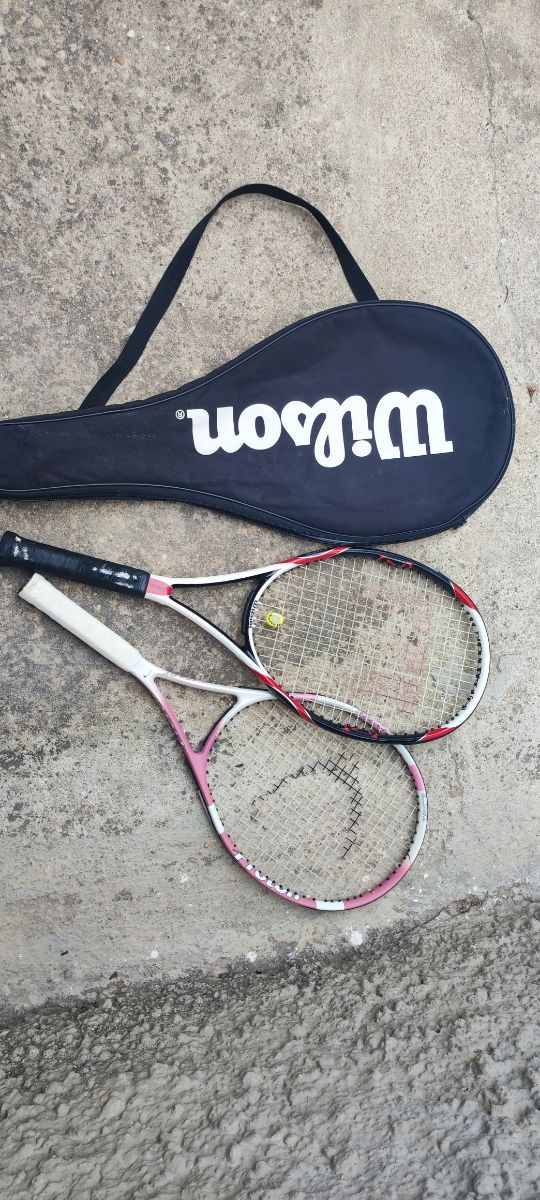 Detalles del productoRaquetas de tenis con muy poco uso. Están muy bien, lo único que habría que cambiar es la cinta del puño que se puede poner nueva. Funda incluida, cogen las dos. precio de las dos juntas y funda de regalo. una sola 20€ las dos por 30€