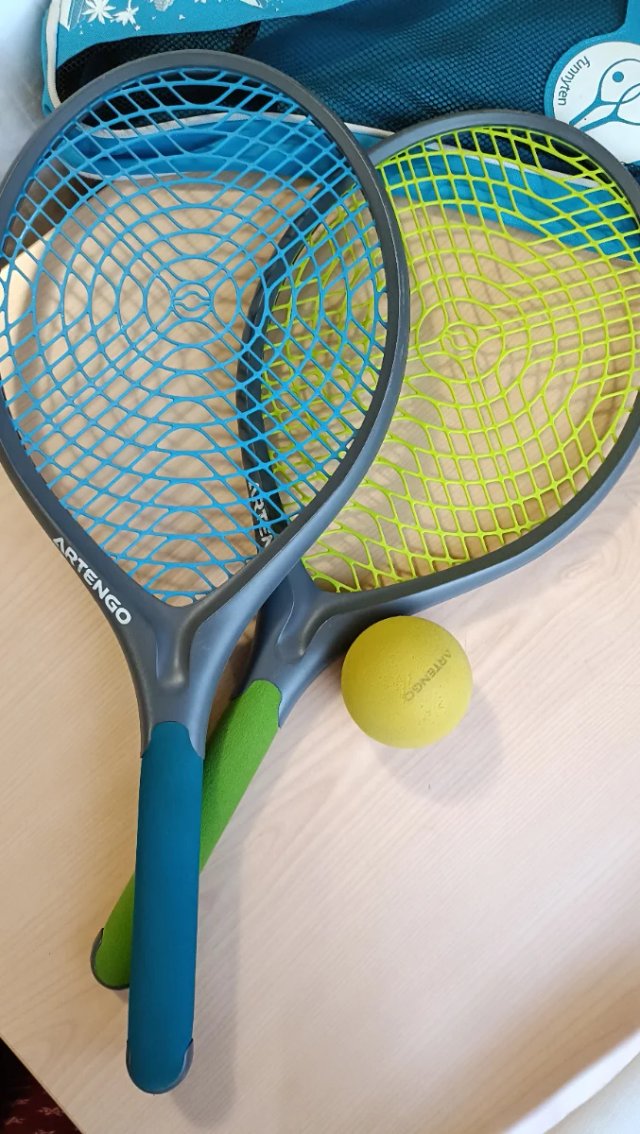 Set de dos raquetas de tenis infantiles de la marca Artengo, ideales para iniciarse en el deporte. Incluye una pelota.