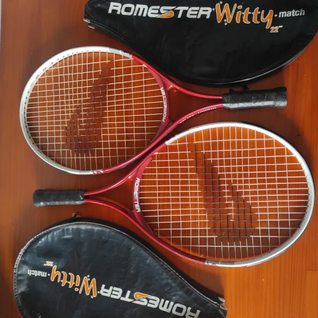 Detalles del productoDos raquetas de tenis Romester Witty, ideales para niños. Incluyen fundas protectoras.