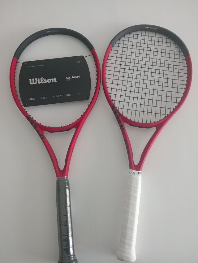 Se venden dos raquetas de tenis Wilson Clash 100. Una está nueva y la otra ha tenido poco uso. - Raqueta nueva. - Raqueta con poco uso.