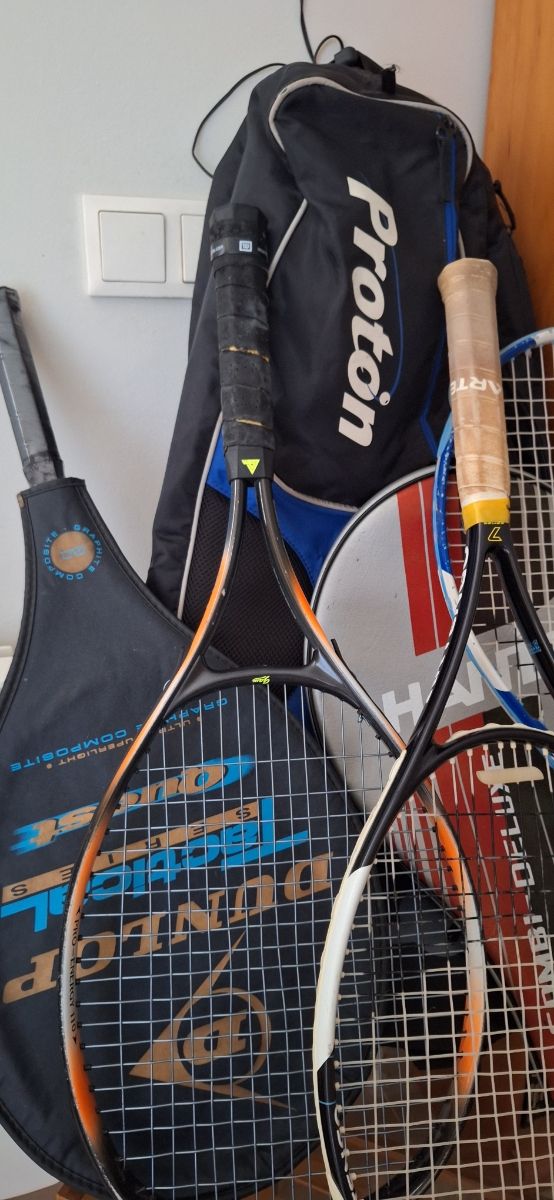 Detalles del productoLote de raquetas de tenis y bolsa de transporte.