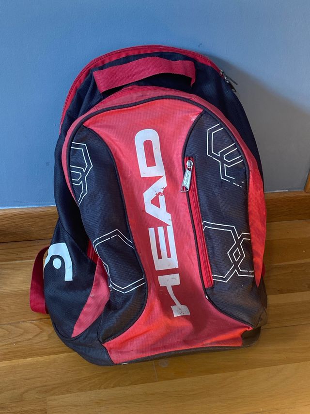 Raquetero de la marca Head, ideal para transportar tu equipación de tenis y raquetas. - Diseño en color rojo y negro. - Logo de la marca visible.