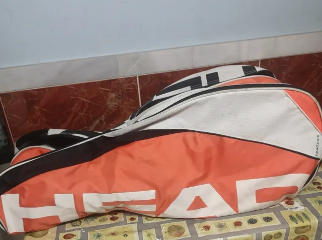 Raquetero de la marca Head con un diseño moderno y llamativo. - Color naranja y blanco. - Logo de la marca visible. - Cierre de cremallera.