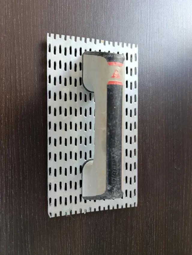 Herramienta para rascar mortero monocapa. - Base metálica perforada. - Mango ergonómico.