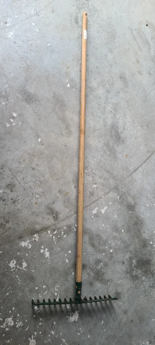 Rastrillo de jardín con mango de madera. - Mango de madera. - Dientes metálicos.