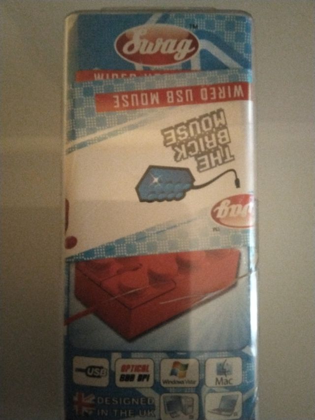 Ratón con forma de pieza de lego. La caja está deteriorada pero el ratón está nuevo, a estrenar