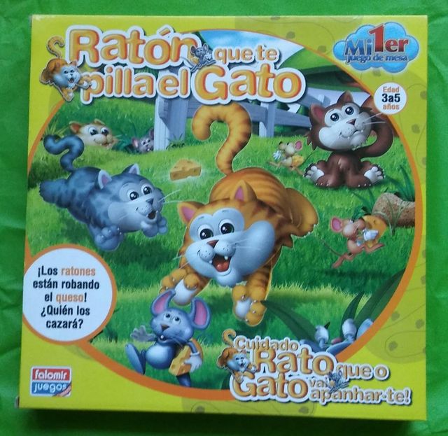 Detalles del productoJuego de mesa Ratón que te pilla el gato, los ratones se están comiendo el queso y el gato tiene que pillar a todos.
