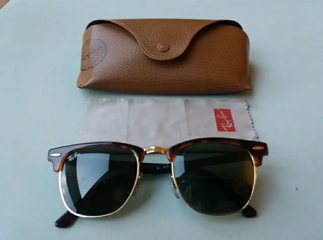 Detalles del productoGafas de sol Ray-Ban Clubmaster, en tono marrón y dorado. Se incluyen las gafas y su estuche original. Las gafas presentan un diseño clásico y elegante. Están en muy buen estado. Vienen con una funda protectora de microfibra.