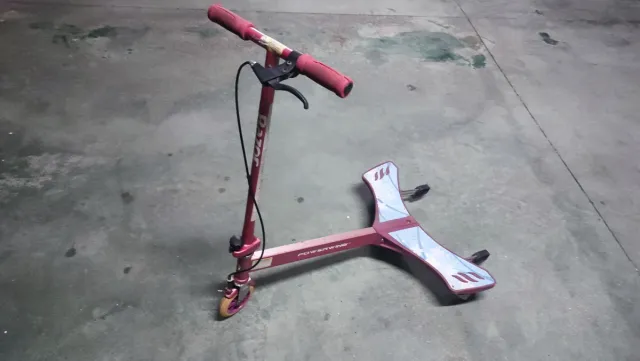 Patinete Razor PowerWing de tres ruedas. - Color rosa. - Diseño tipo delta. Bastante usado pero funciona todo correctamente y rueda con suavidad.