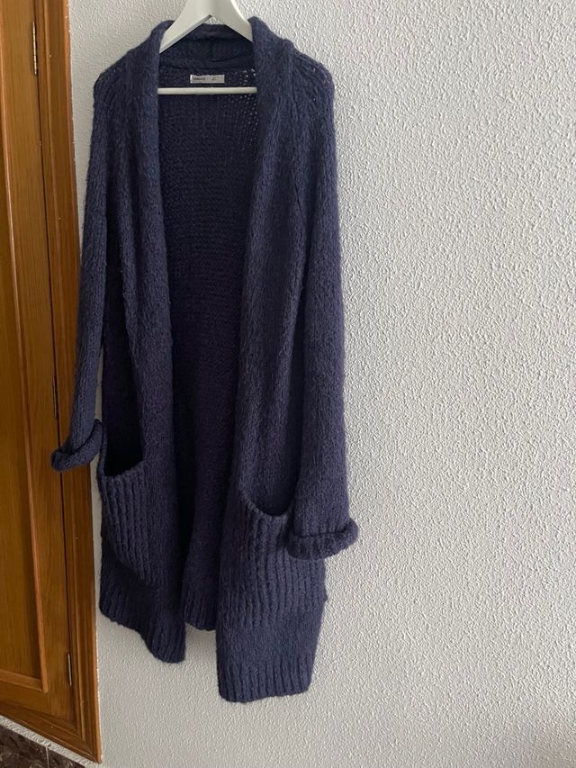 Rebeca larga azul de lana