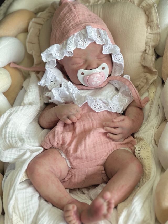 Esta pintada por mi, artesanalmente, con las mejores pinturas para reborns de silicona compradas en tienda especializada, tiene rojeces, venas, moteados, zonas frias, ect..