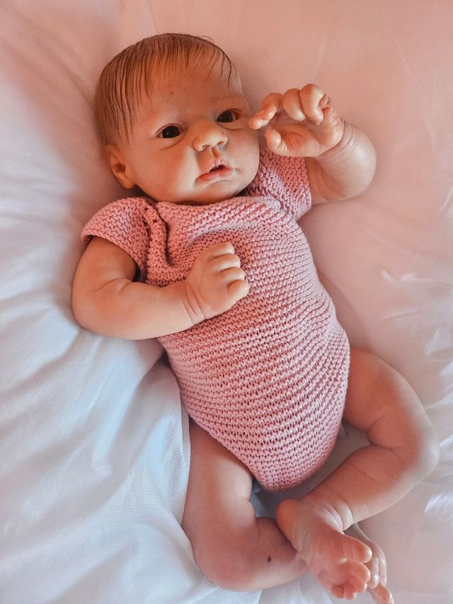 Preciosa reborn pelo injertado de alta calidad, con un diseño de vinilo y ojos de cristal tiene el peso de un bebé de verdad , ideal para Navidad, comuniones...