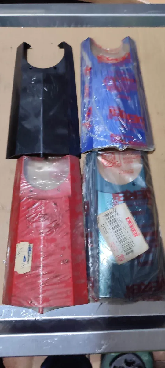 Carcasas para moto Derbi variant. Una unidad en color negro, una en azul y dos en rojo. Precio por unidad - Carcasa negra. - Carcasa azul. - Dos carcasas rojas.