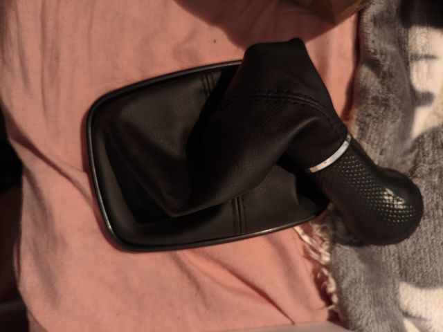 Recambio para palanca de cambios de coche. - Material: Polipiel. - Color: Negro. - Anillo plateado.