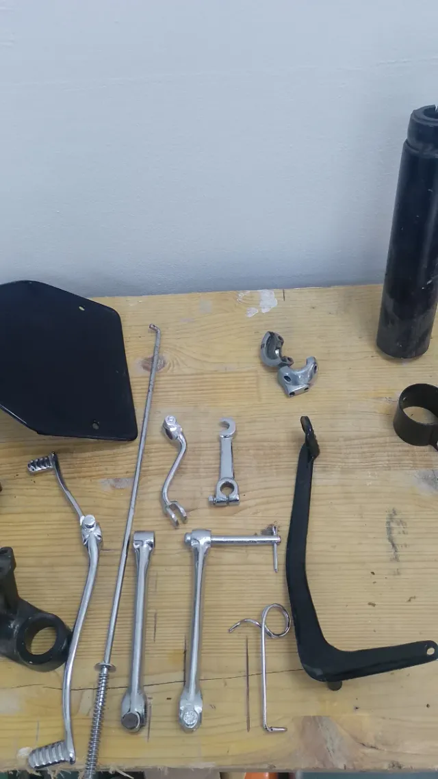 Conjunto de recambios para motocicleta Bultaco. - Piezas metálicas. - Incluye palancas y soportes.
