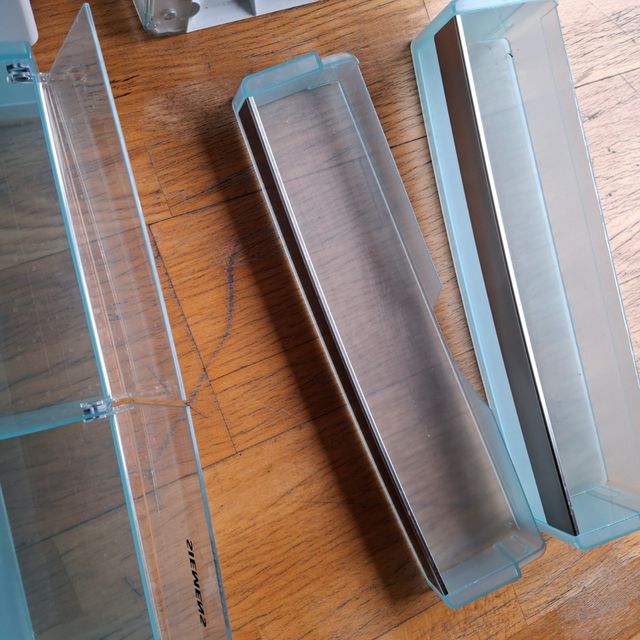 Detalles del productoRecambios baldas nevera SIEMENS. Baldas bajas 20€. Me quedan 2 baldas bajas. Una balda le falta un trozo de pared interior, lo que no interfiere en su uso. La otra balda también es baja, y está algo resquebrajada y pegada con silicona fuerte, lo que hace que se pueda usar sin problemas, de ahí su económico precio. Medidas del producto