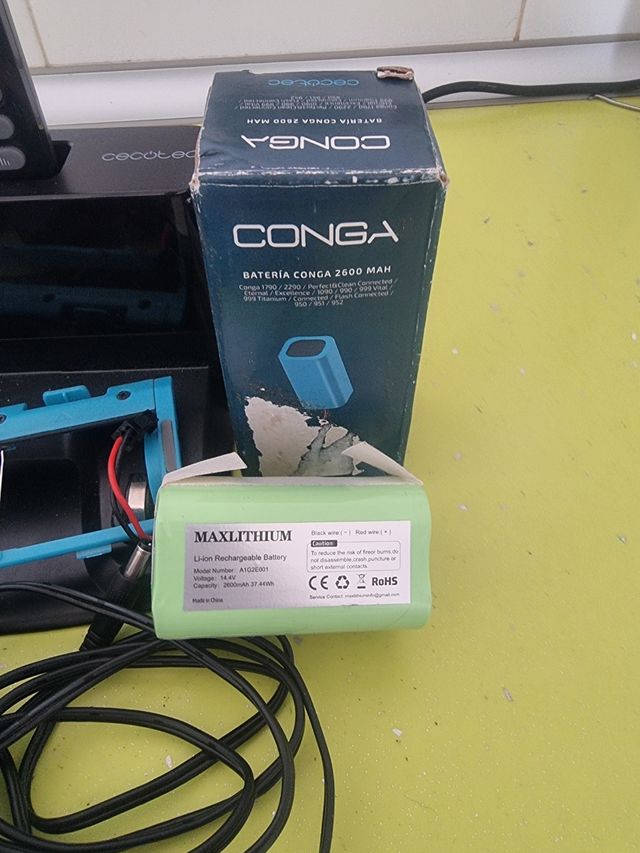 Detalles del productoSe venden recambios originales para robot aspiradora Conga 990. Incluye una batería de 2600 mAh y un mando a distancia. Ambos están en buen estado, con señales normales de uso.