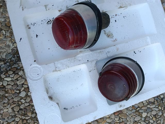 Dos pilotos traseros para Seat 1400. Piezas de recambio para tu vehículo clásico. - Color rojo. - Lente de cristal. - Carcasa metálica.