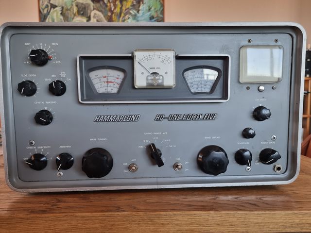 Detalles del productoReceptor de radio Hammarlund HQ-ONE FORTY FIVE. Presenta un diseño clásico y robusto. Ha sido modificado y ahora funciona el CAG en SSB. Así mismo, se le ha instalado un detector de producto (MC1496G) y un filtro mecánico Collins. Tiene un audio muy agradable.