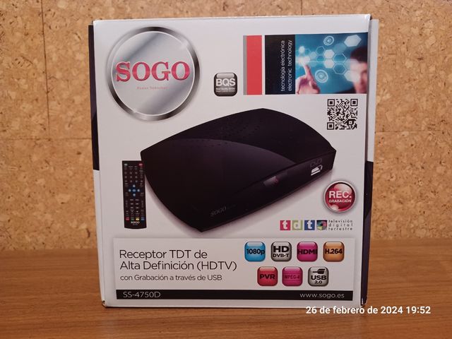 Detalles del productoEl nuevo SS-4750 de Sogo es un receptor de TDT de Alta definición compatible com: MPGE-4 / H.264/ 1.080p emisiones y emisiones TDT estándar compatible con tv Full HD y HD ready
