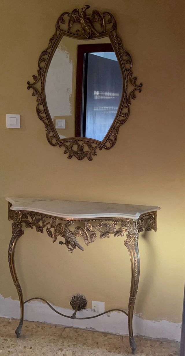 Detalles del productomueble recibidor de bronce y marmol espejo y mueble a juego MEDIDAS espejo 87x70 cm y mueble 88x100 cm Medidas del producto