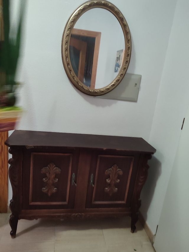 Recibidor en color nogal antiguo de 110 cm largo x 30 cm de fondo y 80cm de alto. Se regala espejo oval