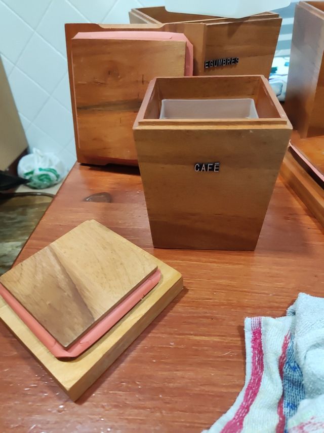 recipientes de madera para: café legumbres azúcar arroz sal precio conjunto 15 precio individual grandes 4 euros precio individual pequeño 3 euros
