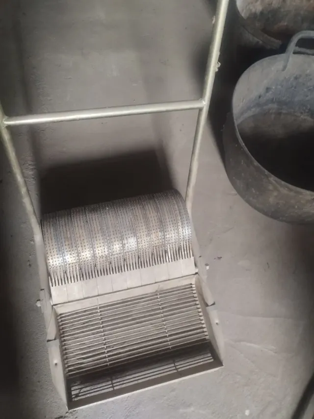 Herramienta para recoger aceitunas caídas del suelo. - Fabricado en metal. - Diseño con rodillo y rejilla.con depósito para las aceitunas