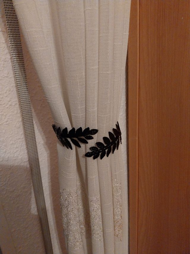Recogedor Cortinas Hojas Metal Negro