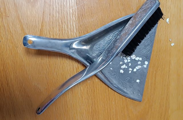 Detalles del productoConjunto de recogedor y cepillo para migas de alpaca, con decoración de fina filigrana. Buen estado. Medidas del producto