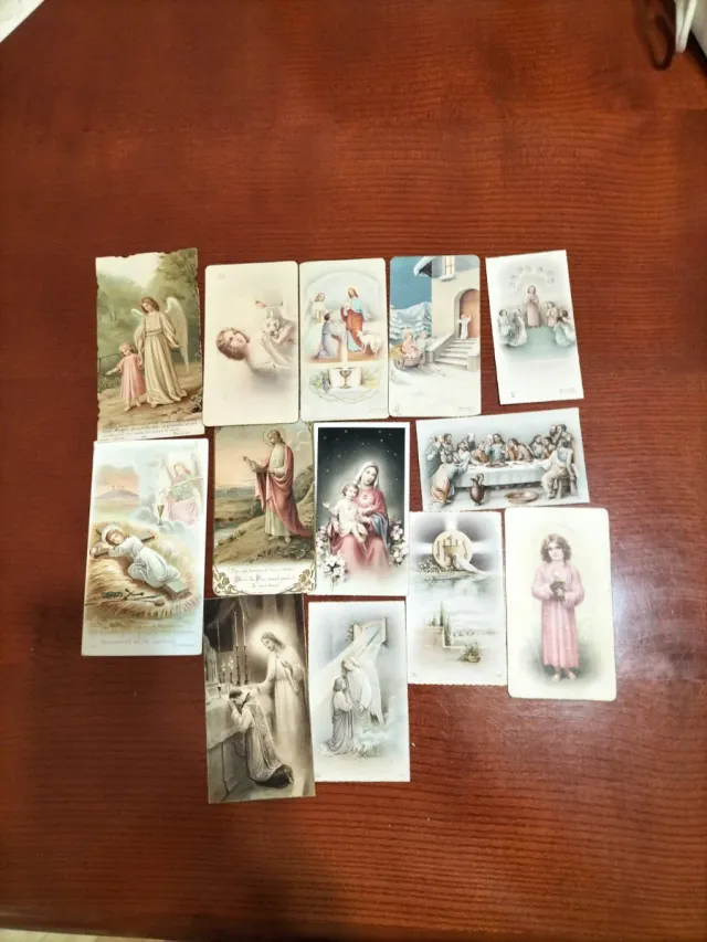 Detalles del productoLote de recordatorios de Primera Comunión con imágenes religiosas.