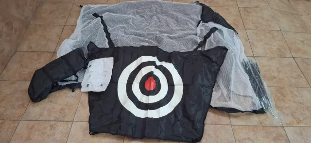 Red de práctica de golf con diana para mejorar tu puntería. Incluye postes para su montaje. - Diana con círculos concéntricos. - Malla de nylon resistente. - Postes de soporte.
