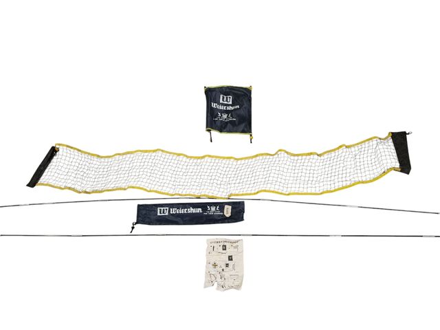 Detalles del productoRed portátil de bádminton o voleibol Weiershun de 2,8 m de largo, ideal para jardín, playa o parque. Incluye tubos metálicos de montaje rápido, red con bordes reforzados, bolsa de transporte e instrucciones originales. Fácil de montar y transportar gracias a su diseño ligero y compacto. Uno de los anclajes está dañado, pero puede repararse fácilmente o usarse con cuidado sin afectar al juego. Perfecta para uso recreativo o familiar. Precio rebajado por este detalle: 20 €.