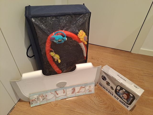 Detalles del productoLote de artículos para bebé: reductor de bañera, colchón plegable y retrovisor.