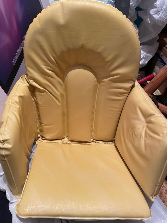 reductor, protector y comodidad para silla trona bebé. color amarillo plastico suave facil de limpiar