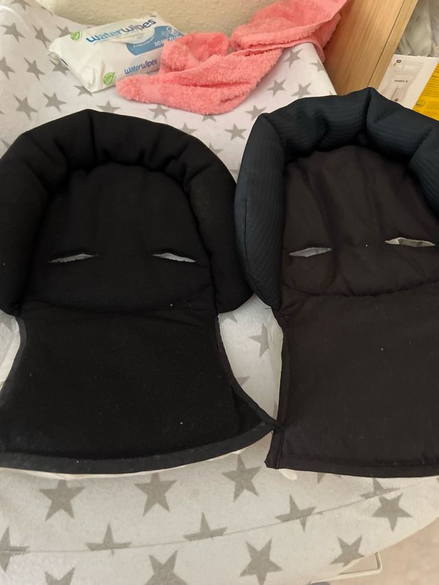 Detalles del productoReductores de asiento para Maxi-Cosi Cabriofix. Son de color negro y están hechos de tela.