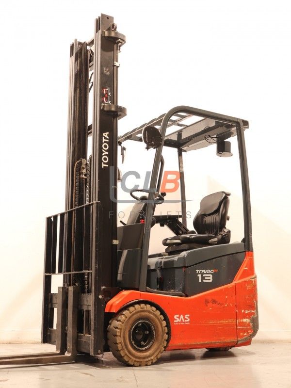 Detalles del productoRef: 6478, Frontal Eléctrica 3 ruedas, Marca TOYOTA, Modelo 7 FBEST 13, Año 2016, Horas 11220, Capacidad 1300Kg, Mástil Triplex, Altura Máquina 2740mm, Altura Máxima 6490mm, Elevación Libre 2220mm, Horquillas 800mm, Batería Nueva a Estrenar 24V 805Ah (2 Años Garantía) , Cargador 24v