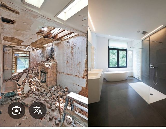 Detalles del productoFotos de una reforma integral de baño. Se aprecia la transformación desde un estado ruinoso hasta un espacio moderno y funcional. 633419196